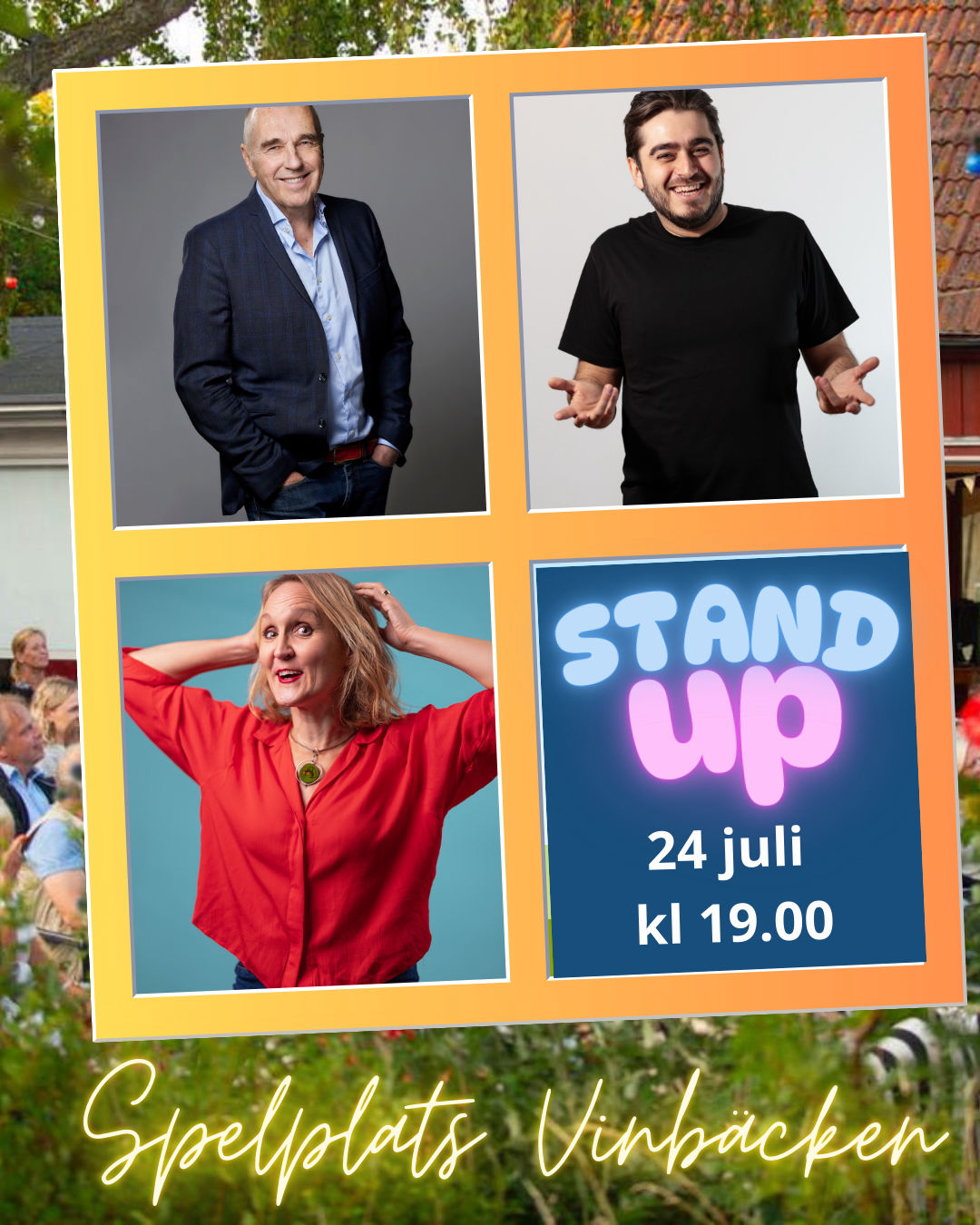 Vi är så glada att återigen kunna presentera stand-up på Vinbäcken scen igen. Kom och njut av humor, igenkänning och gapskratt! Möt en av Sveriges mest rutinerade komiker tillsammans med energifyllda och snabbtänkta Tomas Kaminski. Allt under ledning av vår konferencier Hanna K Mölstad! Vi ses under äppelträden i sommarkvällen!